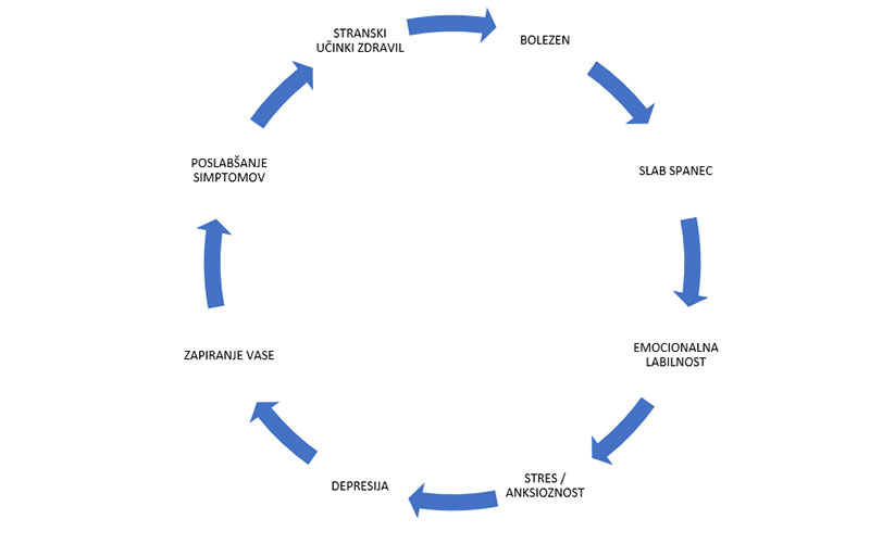 To pa je povezano s strahom pred padci in poškodbami, tako da pride do pomanjkanja ravnotežja in oteženega gibanja.