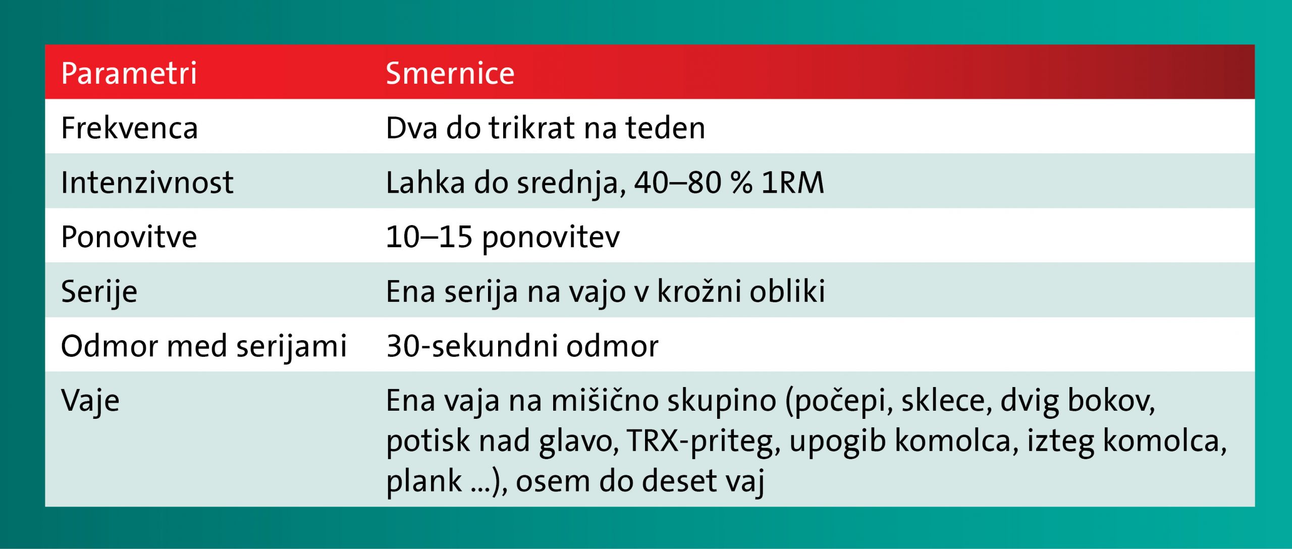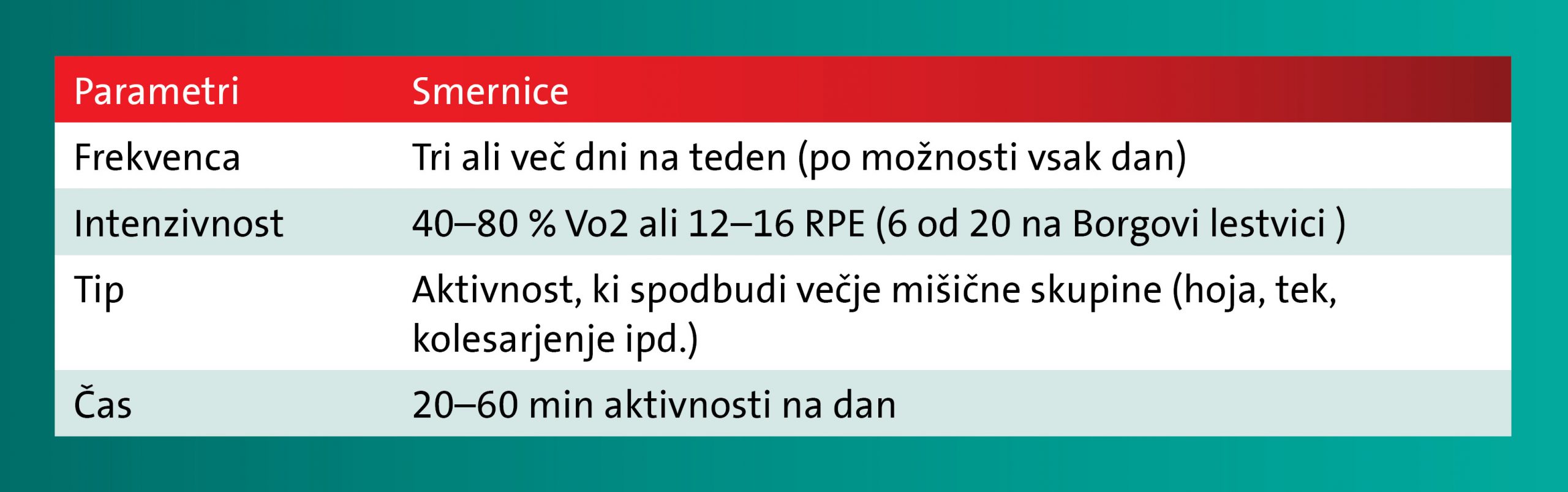 Pri tridesetih minutah zmerne vadbe vsaj tri- do petkrat na teden se izboljša telesna pripravljenost ter zmanjša možnosti za nastanek bolezni srca in ožilja.